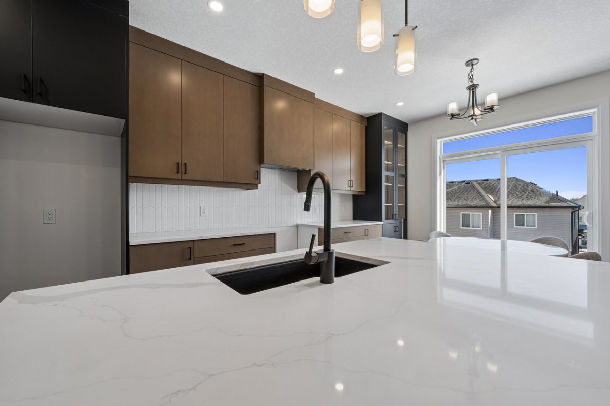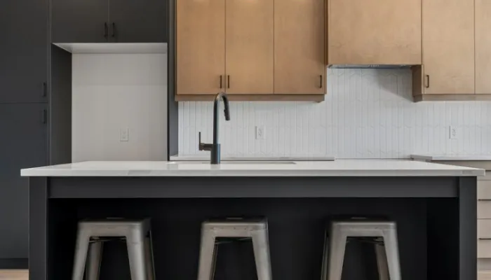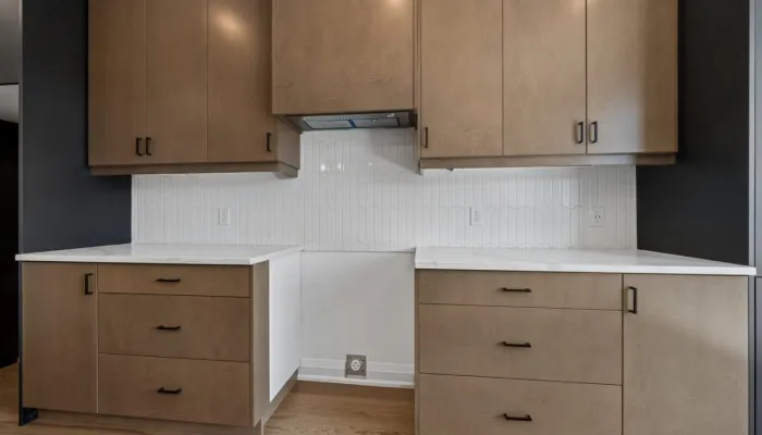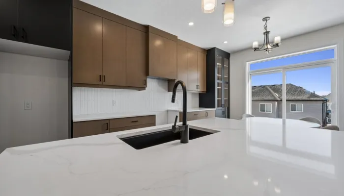 - Quartz countertops with backsplash and