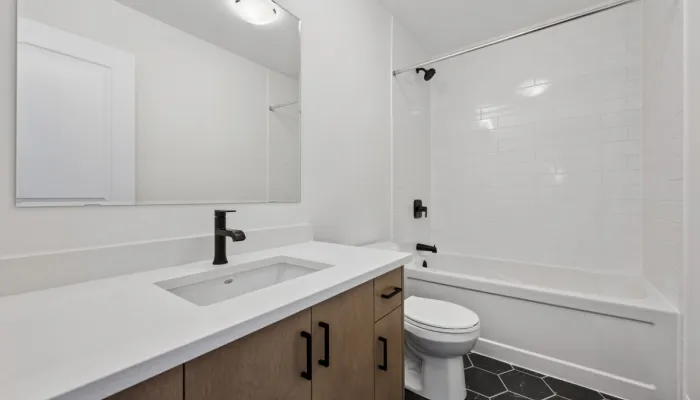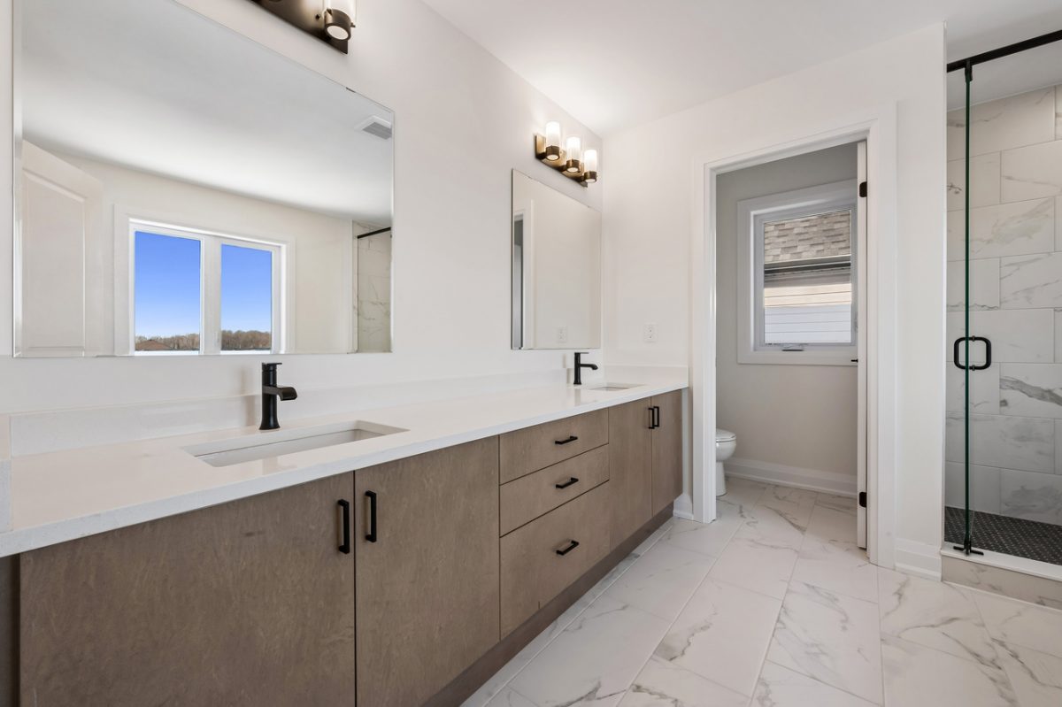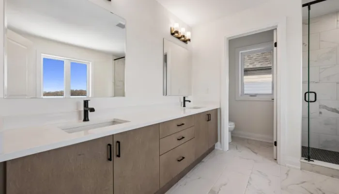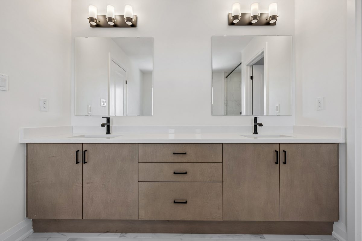 - Quartz countertops with undermount sinks