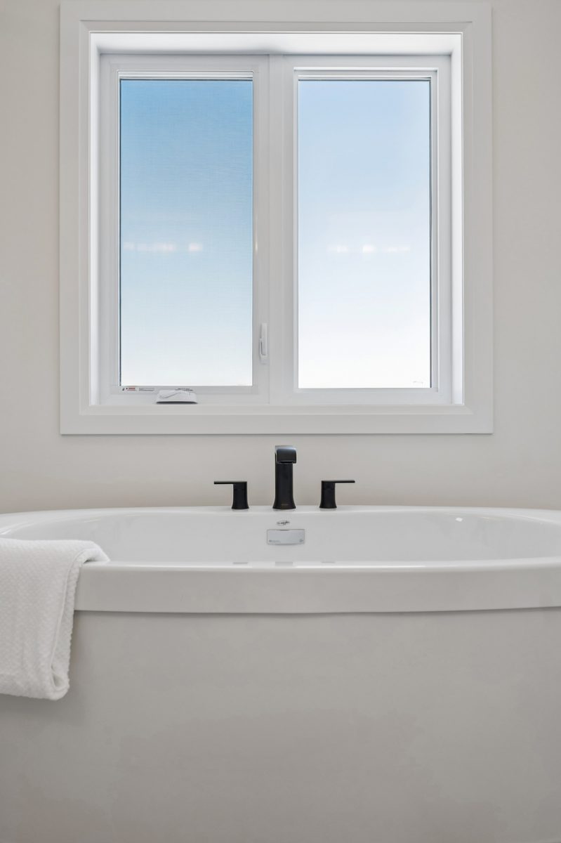 - Black framed triple pane vinyl windows