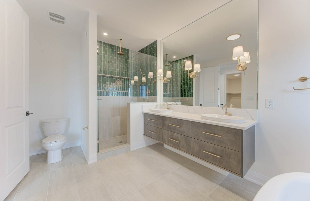 - Floating vanity to the powder room and ensuite.