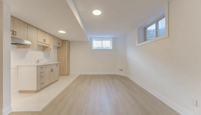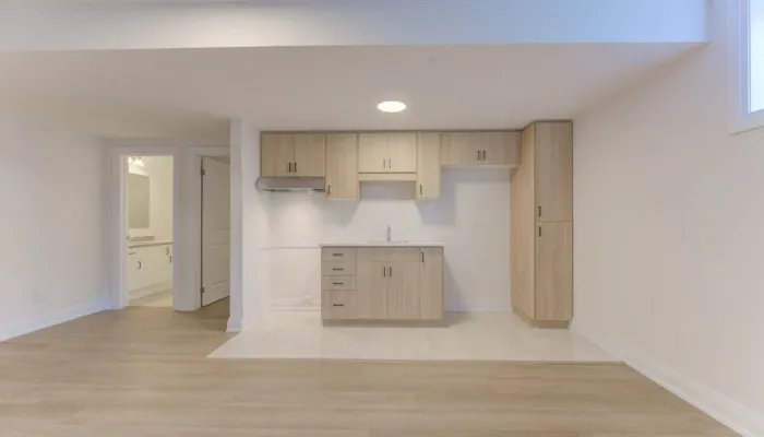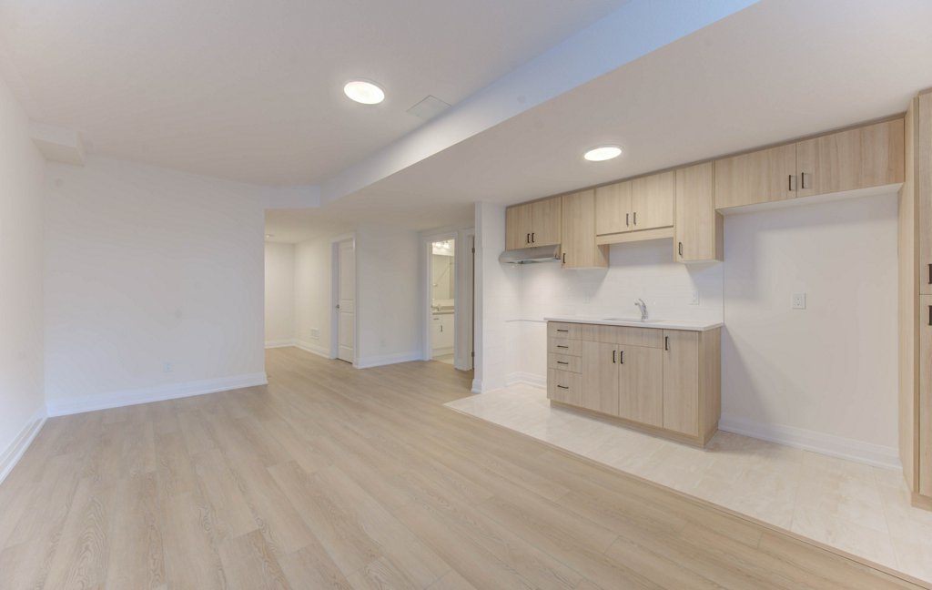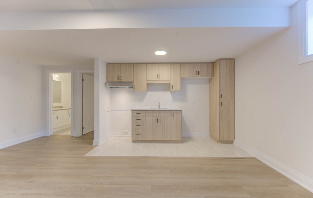 Add a kitchen, living/dining area, bedroom, and 3-piece bathroom to your basement