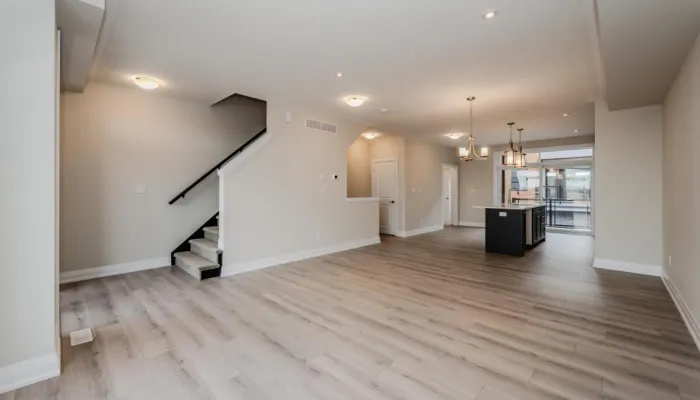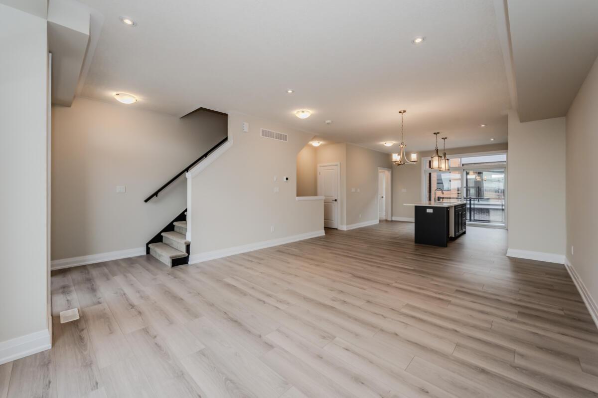 Located at The Trailside Towns community in Waterloo, this spacious Three-Storey Rear-Garage Condo Townhome boasts a thoughtfully designed living space.