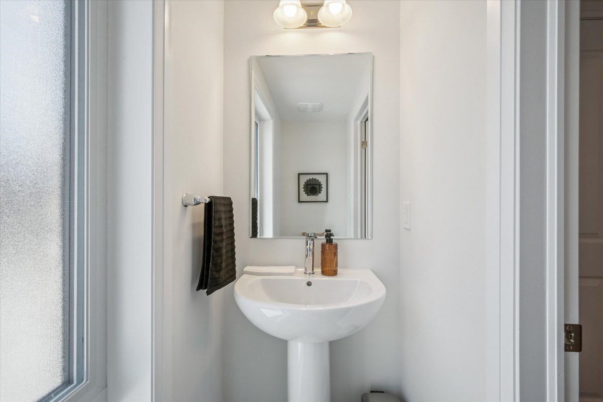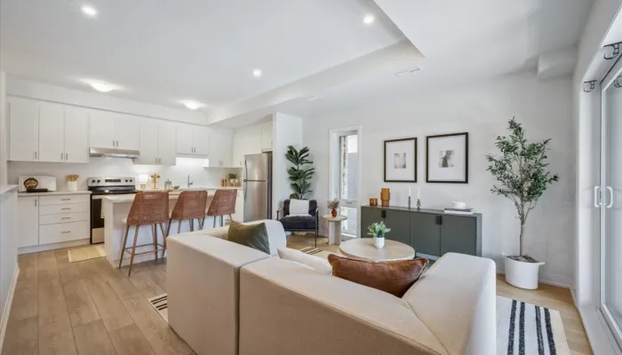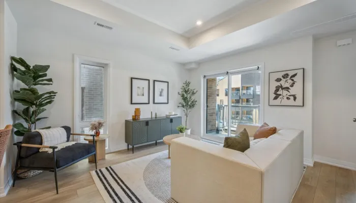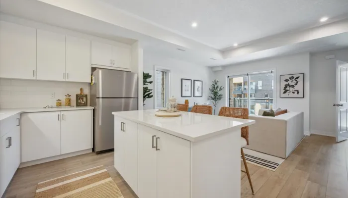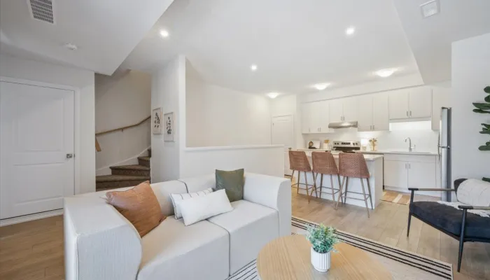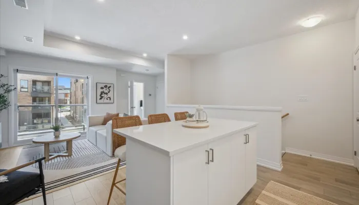 On the main level (second floor), you’ll find an open-concept layout featuring a modern kitchen with island seating and a bright great room that’s ideal for hosting friends or enjoying quiet nights in. A convenient powder room and private covered balcony make this space as functional as it is beautiful.